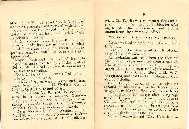 Page 8-9 12th Ohio Volunteer Cavalry Reunion Booklet 1888 Back to Main Page Copyright © 2001 Larry Stevens - Brent Nimmo - Clair McCullough