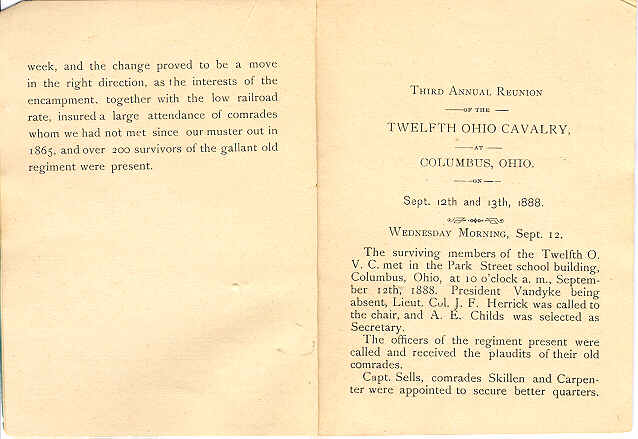 Page 4-5 12th Ohio Volunteer Cavalry Reunion Booklet 1888 Back to Main Page Copyright © 2001 Larry Stevens - Brent Nimmo - Clair McCullough
